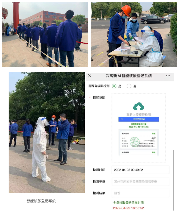 根據(jù)上級(jí)文件精神指示,配合開(kāi)展全體員工及鄰廠單位全員核酸檢測(cè),為安全生產(chǎn)筑牢“防護(hù)墻”。同時(shí)要求員工在武高新AI智能核酸系統(tǒng)中及時(shí)上傳最新核酸證明。