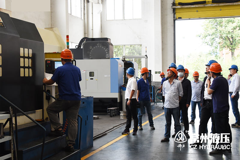 下午,與會的山東濰坊抽水蓄能有限公司衣傳寶書記一行在我司相關(guān)領(lǐng)導(dǎo)的陪同下參觀了常州液壓車間現(xiàn)場。常州液壓車間負(fù)責(zé)人就工廠設(shè)備、生產(chǎn)、管理、工作流程等向各位領(lǐng)導(dǎo)作了詳細(xì)介紹。業(yè)主單位對工廠管理、公司產(chǎn)品工藝及品質(zhì)給予了認(rèn)可及肯定。
